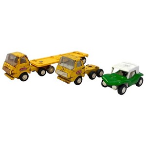 Lote de camiones Tonka remolque tractor plataforma metal amarillo prensado acero verde vintage