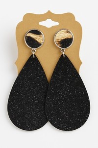 Pendientes Colgantes Lágrima Brillo Negro - Estampado Leopardo Tachuela Top Boho...