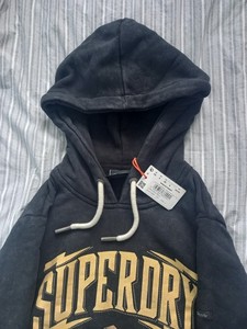 Superdry Mujer Sudadera con Capucha Jersey Con Capucha Mujer Reino Unido Talla 8 XS Negro Dorado Sudadera 45,90 EUR