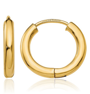 Pendientes de aro pequeños Huggie redondos de oro amarillo macizo de 14K