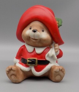 Oso de peluche vintage Homco Santa con sombrero y saco de juguete retro Taiwán