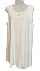 HANRO Camisón GRANDE Blanco Algodón Mercerizado Encaje Ribete Sin Mangas Vestido de Noche