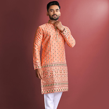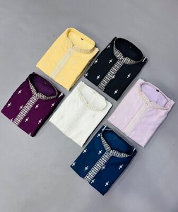 Pijama Punjabi Kurta para hombre indio Lucknowi trabajo Kurta para boda fiesta ropa