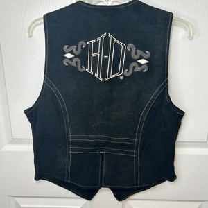 Chaleco Harley-Davidson Vintage Años 90 Cuero Gamuza Negro Mujer Motociclista L Bordado