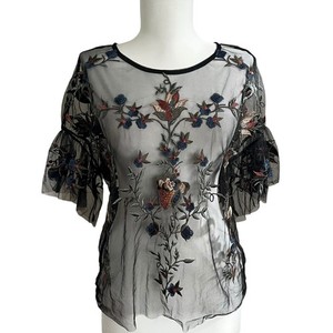 Top de Malla Floral Talla S Bordado Transparente Fairycore Grunge Boho Gótico Indie Festival