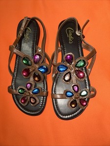 Sandalias para mujer Candie's marrón con tiras talla 7 M acentos de piedras preciosas multicolores 21,56 EUR