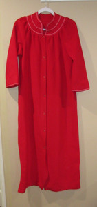 De colección. Camisón Largo Completo-Bata Rojo Rubí Poliéster Mujer Med. Cuello a presión de perlas