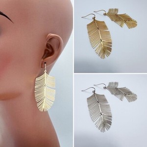 Pendientes de gancho colgantes con diseño de hojas de metal finas de color dorado o plateado