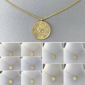 Collar Colgante Círculo Círculo Hecho a Mano Signo del Zodiaco Acabado en Oro