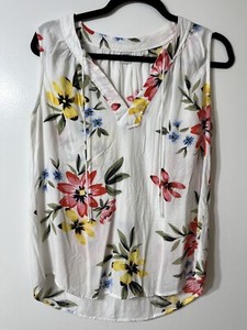 Top sin mangas con cuello en V y corbata estampado floral azul marino antiguo