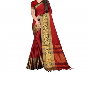 Sarí de seda de algodón para mujer Banarasi con blusa sin coser a450