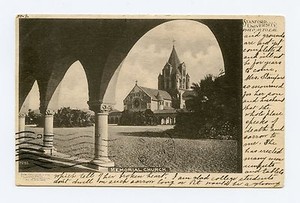 Postal a color de la primera iglesia cristiana en Canton, Ohio