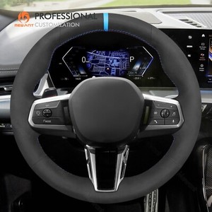 Hand Stitch Suede Car Steering Wheel Wrap for BMW X1 U11 2023-2024 / X2 U10 2024