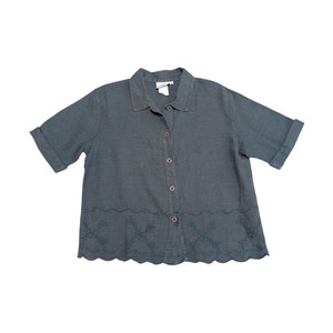 Lo último Camisa Algodón Marc Ware Lino Abotonada Bordada Manga Corta Gris Azul
