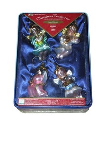 Juego de 4 adornos musicales de querubín vintage de vidrio soplado a mano con lata