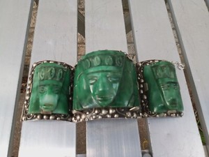 De Colección Noritake Art Deco Puff Polvo Compacto Porcelana 3.25" Aleta Marca Verde