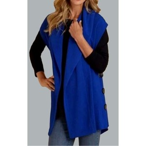 Chaleco Soft Surroundings Frente Abierto Medio Azul Largo Drapeado Sin Mangas Cárdigan