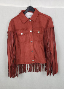 Chaqueta Juicy Couture para mujer L marrón óxido imitación gamuza flecos vaquera occidental 56,00 EUR