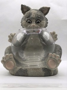 Estatuilla de cuenco de vidrio de acuario de resina vintage para gato MNG 2005