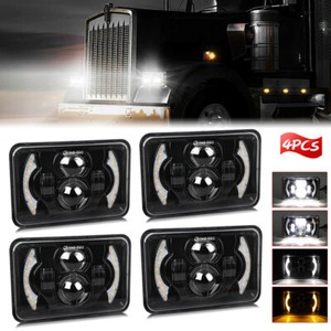 4PCS 4x6" LED Headlights For Kenworth W900 T600/800 C500 T600A Peterbilt 357 378
