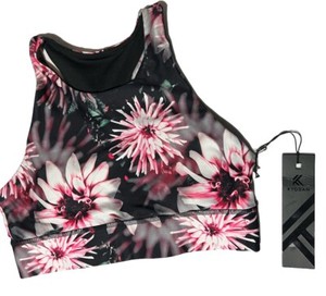 Sujetador deportivo Kyodan para mujer negro talla S rosa belleza floral cuello alto elástico