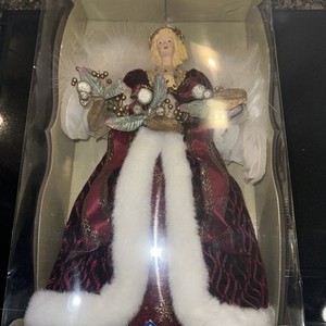 Porcelana 16" Angel Tree Topper Centro de mesa Llave de latón 1999 BK Bata granate #72199