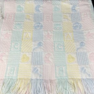 Manta de bebé vintage pastel ABC bloque cuadrados acrílico flecos lunas globo estrellas