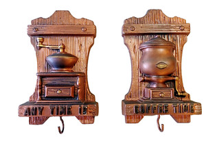 Ganchos de pared vintage delantal toallero madera marrón blanco plástico mediados de siglo