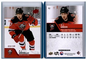 20/21 2020/21 Upper Deck AHL Exclusives #67 A.J. Greer Tigers /100