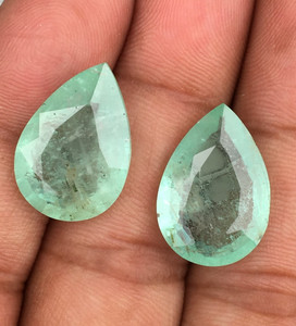 Impresionante par corte pera esmeralda natural buena calidad hermoso color 21,10 quilates