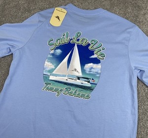Tommy Bahama Camiseta Para Hombres S "Sail La Vie" NUEVO CON ETIQUETAS $49.50 Pullover Manga Corta Azul