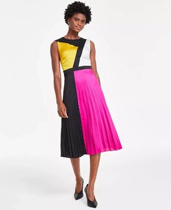 Vestido midi para mujer KARL LAGERFELD PARIS satinado en bloques de colores 2 cierre de cremallera múltiple