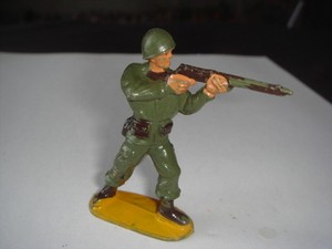 FIGURINE SOLDAT AMÉRICAIN TENUE ET CASQUE VERT FONCE DEBOUT VISE AU FUSIL
