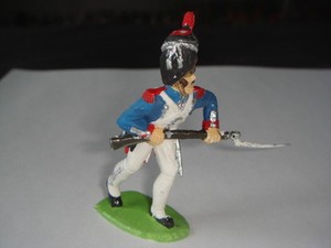FIGURINE EMPIRE HUSSARD AVEC FUSIL EN BIAIS MODÈLE SANS PLUMET (CASSE)