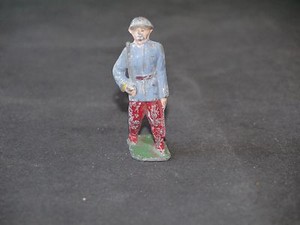 FIGURINE PLOMB PIÉTON POILU 14-18 BLEU ET ROUGE SABRE ÉPAULE (CASSE)