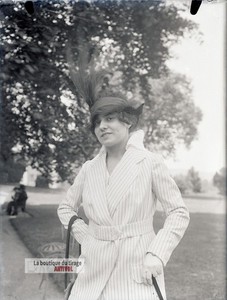 Femme, chapeau à plumes, plaque verre, photo ancienne, négatif 9x12 cm