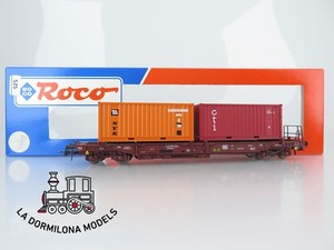 OR526 H0 =DC ROCO 46576 VAGON CARRETERA RODANTE CONTENEDORES TRANSPORTE COMBINAD