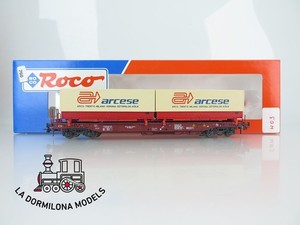 OR760 H0 =DC ROCO 46376 VAGON CARRETERA RODANTE CONTENEDORES ARCESE de la FS -