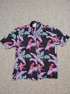 Camisa Hawaiana De Colección PARADISE FOUND Para Hombres M Loros Multicolor Algodón Magnum PI