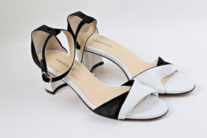 Sandalias SARAH FLINT Hechas a Mano Negras Blancas Gamuza Cuero Bloque Correa al Tobillo Talla 39