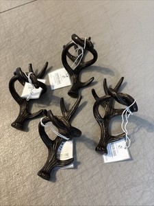 Rustic Saro Lodge Cabin Lifestyle Antler Aged Metal Cloth Napkin Ring, Set of 4