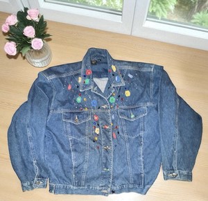 Chaqueta vaquera vintage Carole Little Sport para mujer de mezclilla con flores deslumbradas talla 10