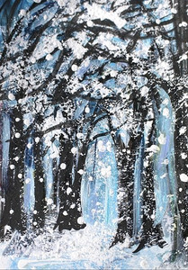 PINTURA DE INVIERNO ACEO Original ÁRBOLES de Nieve Paisaje Frío Bosque Naturaleza ATC ARTE