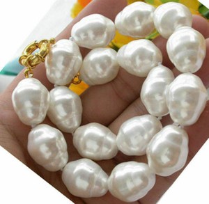 COLLAR GRANDE MODA 20MM BLANCO BARROCO CONCHA PERLAS 18" es concha No Perla