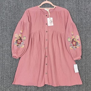 Vestido Jessica Simpson Niñas M Rosa Polvorienta Boho Largo Bordado Mangas Globo