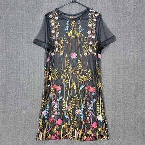 Vestido Lencería Negro Transparente Para Mujer 1XL Sexy Malla Caprichosa y Flores Bordadas
