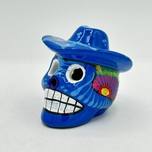 Calavera de Talavera de Cerámica de 2.5 Pulgadas con Sombrero de Vaquero Día de Muertos México Arte Popular 13,30 EUR