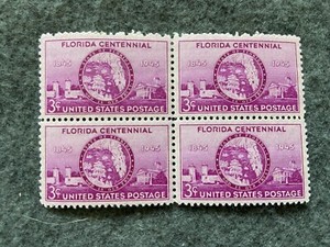 Lote de 4 estampillas postales de 3 centavos sin usar del centenario de Florida 1845-1945 de Estados Unidos 4,30 EUR