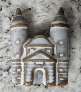 Castillo o iglesia miniatura ~2" de alto - gres con un precioso esmalte por goteo "nieve"