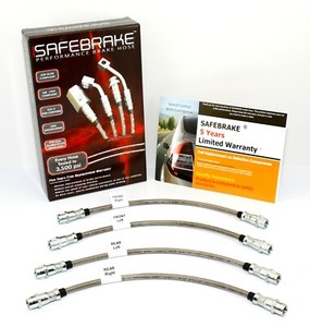 SAFEBRAKE es un kit de mangueras de freno de repuesto que reemplaza todas las mangueras de freno de hule originales de tu auto. SAFEBRAKE puede marcar una gran diferencia en el rendimiento de los frenos de tu auto. (Consulta los comentarios de nuestros clientes de eBay).